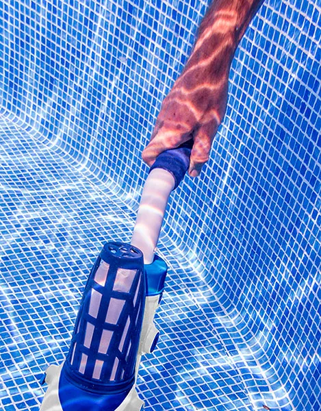 O aspirador elétrico Vac plus está pensado para piscinas desmontáveis e spas.
