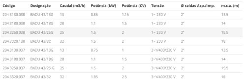 Bomba BADU 43 25m3/h – 400V – 2CV