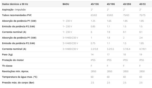 Bomba BADU 43 32m3/h – 400V – 2,5CV
