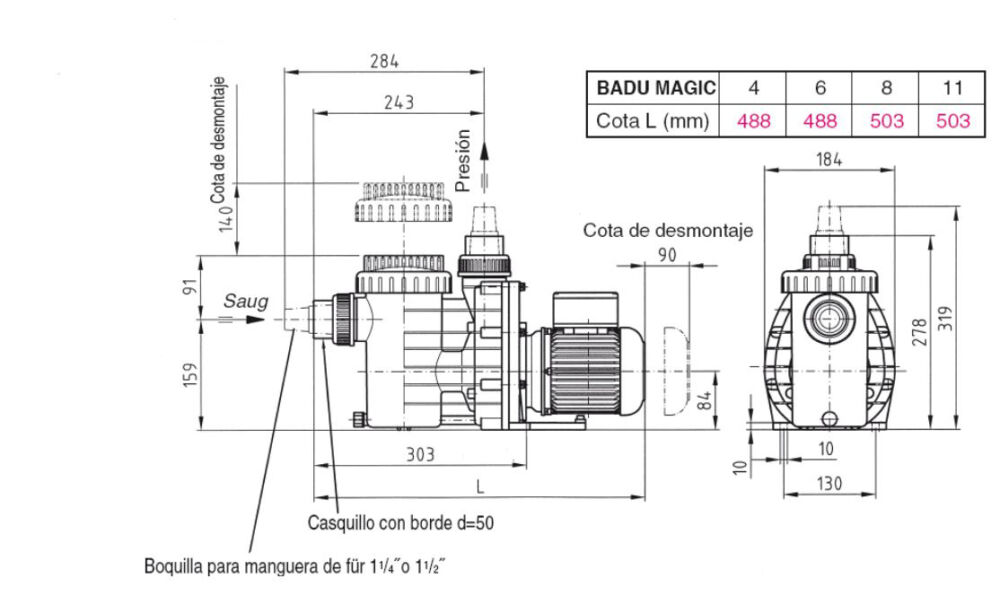 Este tipo de bombas Auto aspirantes podem instalar-se facilmente. Para mais, podem fazê-lo a um máximo de 2 m sobre ou debaixo do nível da água indistintamente. O eixo do motor não estará em contato com a água da piscina, pelo que temos uma separação elétrica completa e segura.