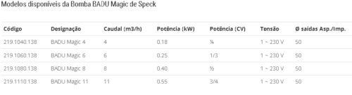 Speck desenhou uma serie de unidades de filtração pequenas que são uma excelente opção para as piscinas fixas e de superfície. A gama de bombas BADU Magic, com até 4 modelos diferentes, caracteriza-se pelo uso de materiais de grande qualidade, algo que esta marca já nos têm acostumados. Desta forma, os materiais dão às bombas BADU Magic uma larga duração e fiabilidade, além de um alto grau de eficácia.