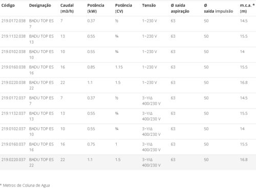 Bomba BADU TOP ES 22m3/h – 400V – 1,5CV
