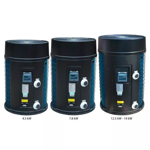 Estas bombas verticais usam também ar do exterior através de um evaporador para repor a água da piscina. Dispõe de um ventilador cujo trabalho é fazer circular o ar sobre um radiador. Uma vez que a bomba aquece, o ar soprado é mais frio que o ar exterior.