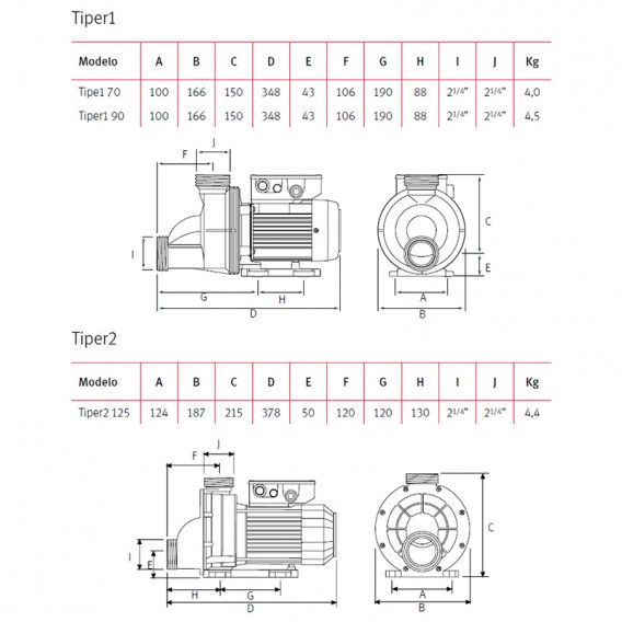 – Bomba Espa Tiper2 125 – Monofásica – Potência de 1,25 cv – até 70 m3*
