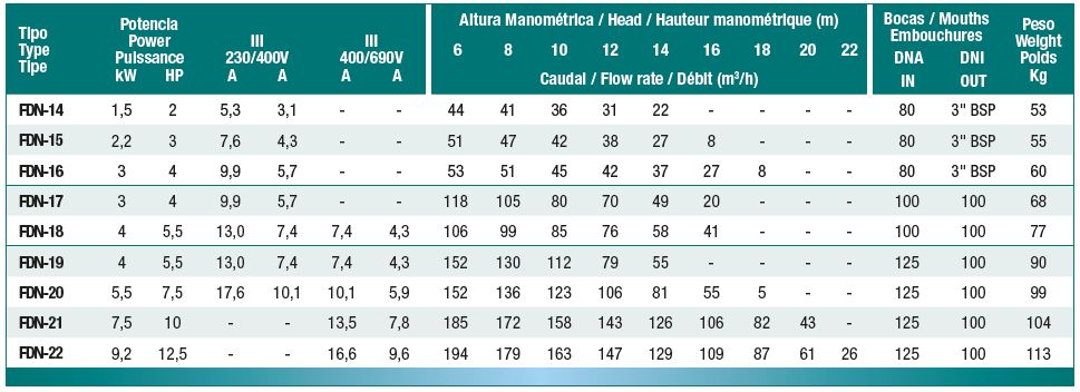 Bomba FDN-18 Trifásica 230/400 – 400/690 V