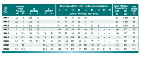 Bomba FDN-17 Trifásica 230/400 – 400/690 V