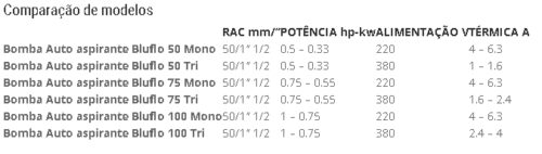 Motor assíncrono, fechado por ventilação forçada. Proteção IP55/2850 R.P.M. /50 Hz (em 60Hz mediante pedido).