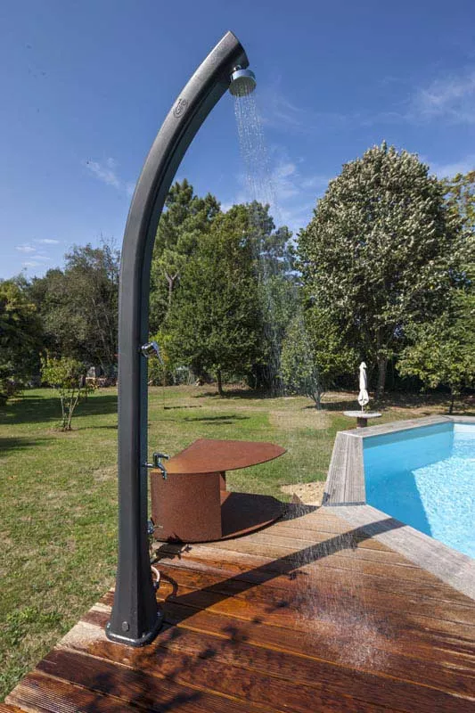 Um chuveiro de piscina com forma curva e 100% ecológico
