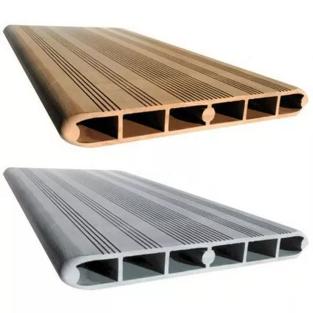 Perfis superiores de compósito de 35 mm com cor personalizável em havana ou cinza costa.