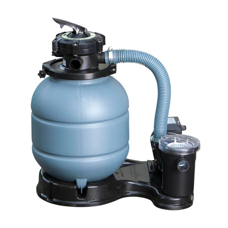 Com caudal de 4 m³/h na bomba de aspiração, o filtro e uma válvula seletora. 20kg de areia e mangueiras de conexão também incluídas.
