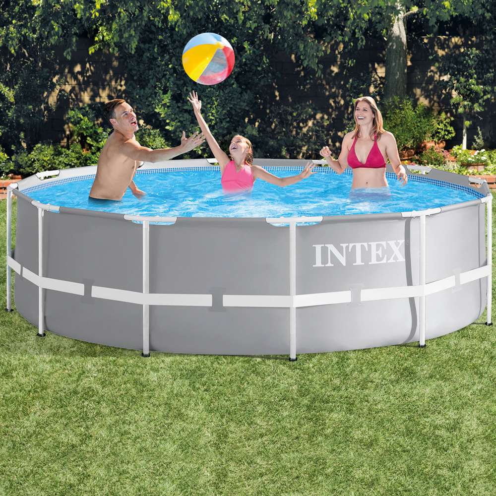 A piscina Prisma Frame da Intex apresenta o modelo de piscina circular com 366 cm de diâmetro e 99 cm de alto, para um desfrute de qualidade, na companhia dos seus seres queridos.