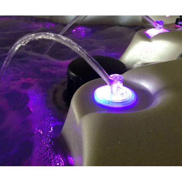 Este incrível sistema lumínico está acompanhado também pelas espetaculares fontes com jatos coloridos também por luzes LED, que acompanham o banho com luzes e sons relaxantes. A cromoterapia é um complemento muito vistoso que fará a experiência no spa inesquecível e que contribui para o relaxamento facilitando o descanso.