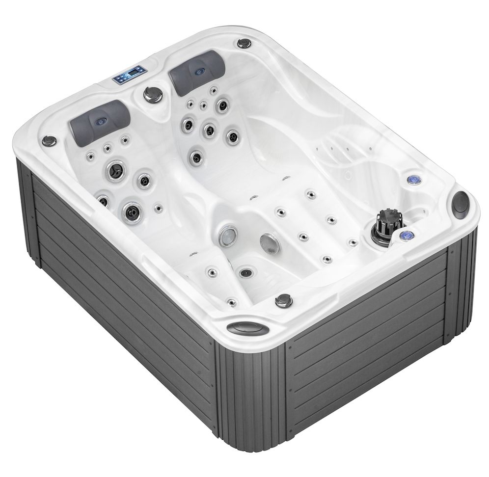 Com até 40 jatos de água-ar, além de múltiplos componentes como fontes LED perimetrais, ozonizador para a desinfeção da água, bomba de hidromassagem de 3 CV de potência.