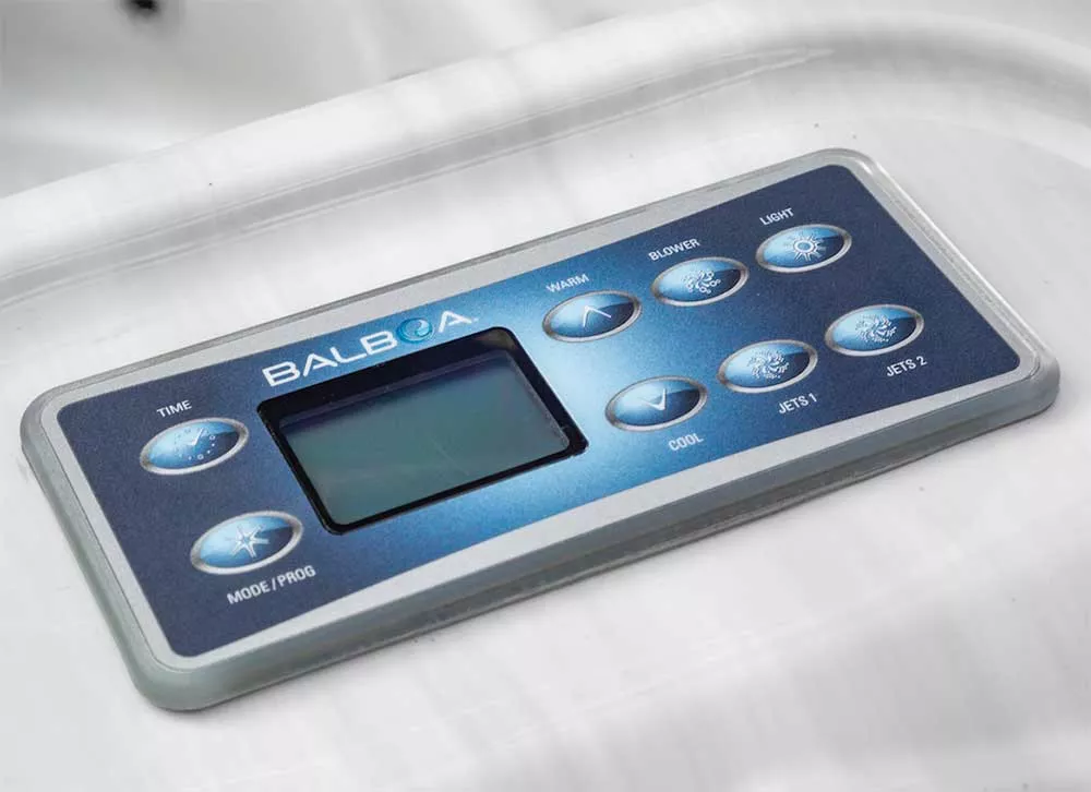 O spa Ibiza inclui de série o painel de controlo da marca Balboa Water Group, modelo gama GS. Com este painel, podemos controlar todas as características do nosso spa, incluindo ligar, temperatura, música através do sistema Bluetooth ou outras configurações de série.